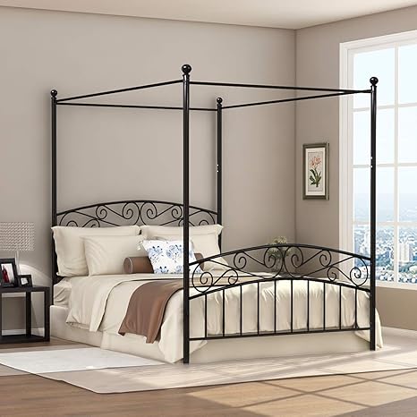 Twin Full Queen King Black Metal Canopy Platform Bed Frame
