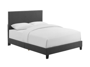 Platform Bed Frame Queen Upholstered Gray Foam Padding Fabric