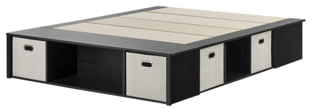 South Shore Flexible Black Oak Full Size Platform Bed With Storage