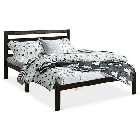 Gymax Solid Wood Platform Bed W Headboard Design Full Size Bed