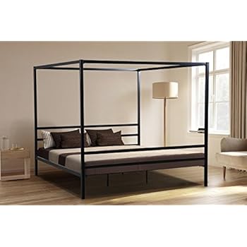 Magnificent Contemporary Canopy Bed Frame Solid Curtains Black