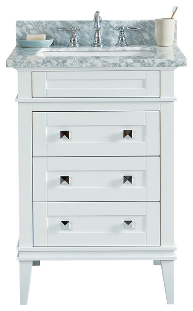 Traditional 24 Bathroom Vanity With White Carrera Marble Counter