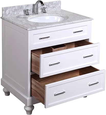 Amelia 30 Inch Bathroom Vanity Carrara White Includes White