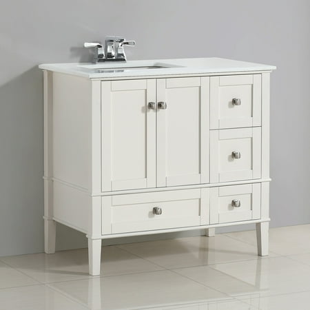 Add style and functionality to your bathroom with a bathroom vanity. 36 inch bathroom vanities. Abel 36 inch rustic white wash bathroom vanity marble top white ceramic sink two doors 3 pre drilled hole for an 8 spread faucet.