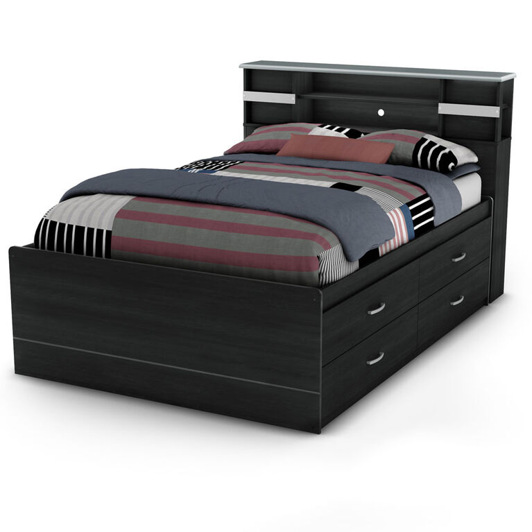 Prepac Black Tall Queen Captains Platform Storage Bed With 12