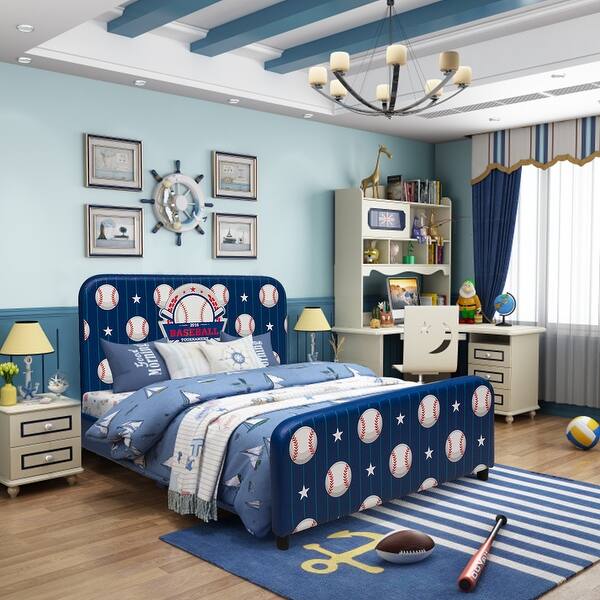 Twin Size Metal Bed Frame Upholstered Headboard Platform Kids