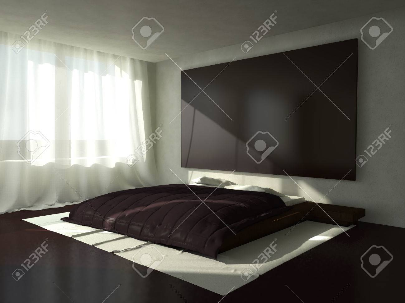 3d Bedroom With A King Size Platform Bed Covered With Sheets