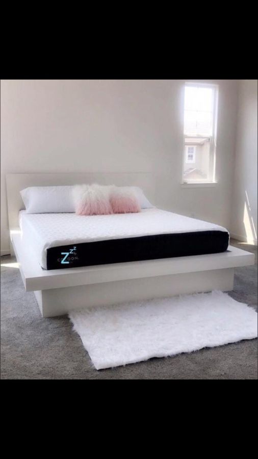 White Full Size Platform Bed Frame King Bedroom Modern With Home