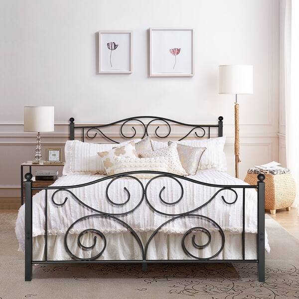 Shop Classic Black Scroll Metal Platform Bed By Vecelo Overstock