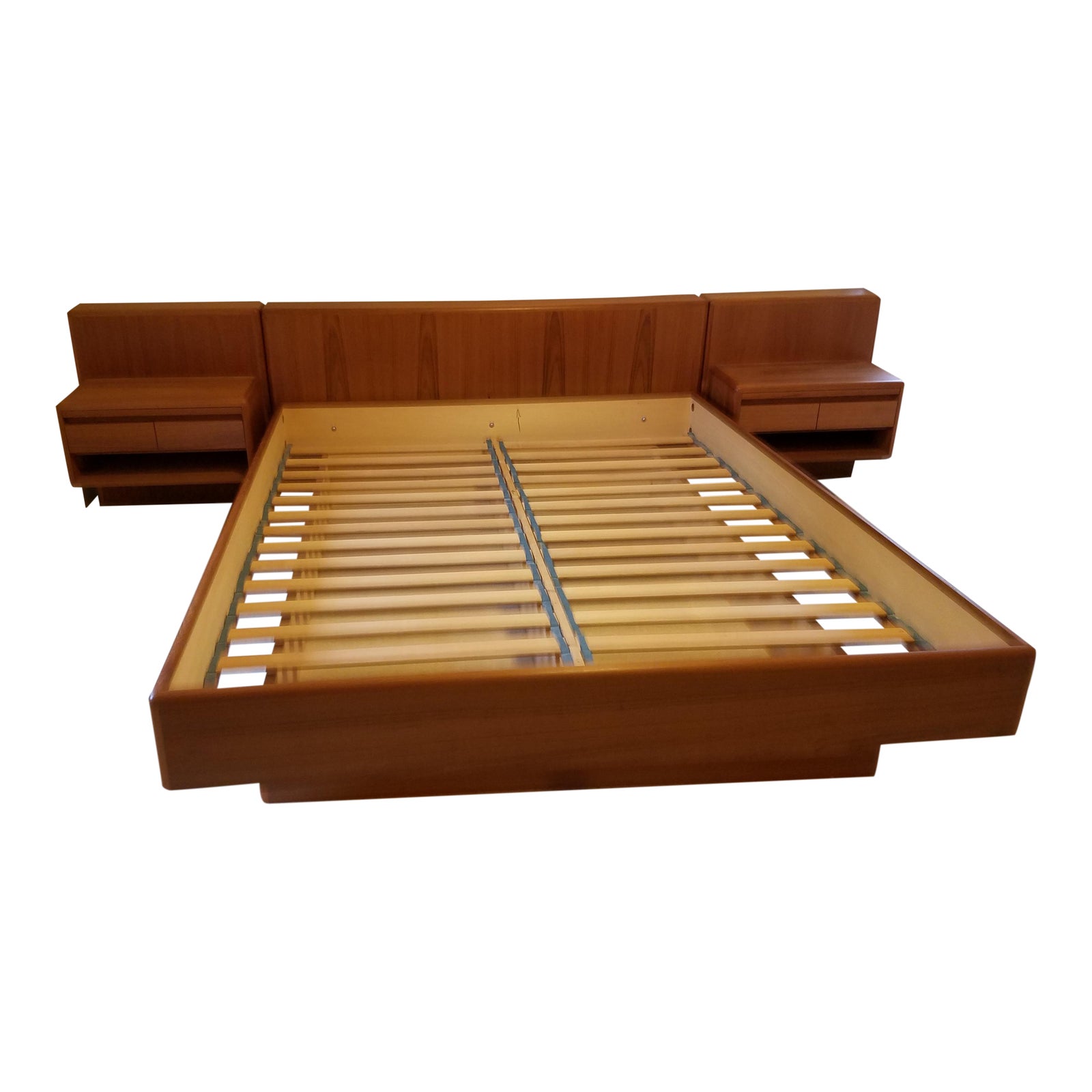 Refinished Mcm Teak Platform Bed W Floating Nightstands Queen
