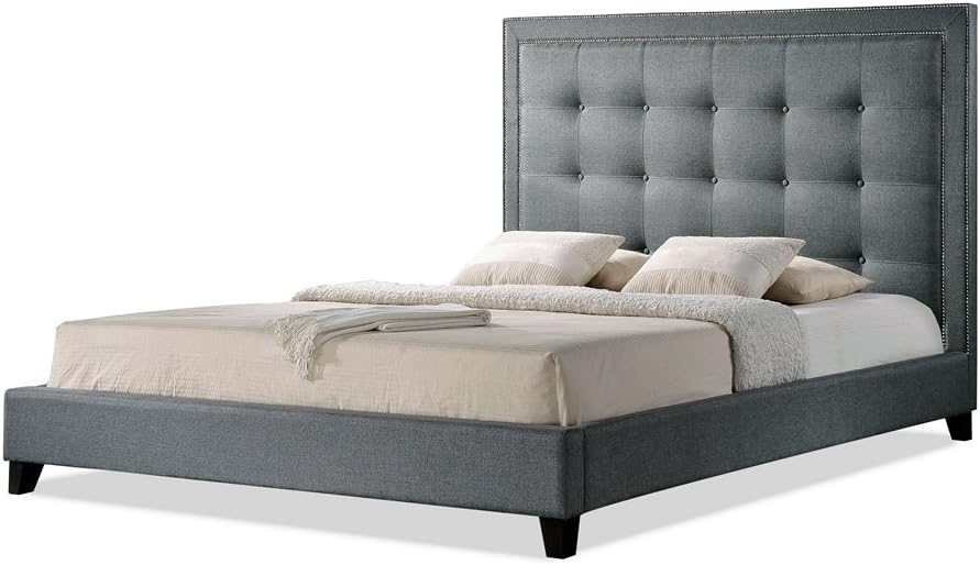 Amazon Com Contemporary Platform King Size Bed In Grey Linen