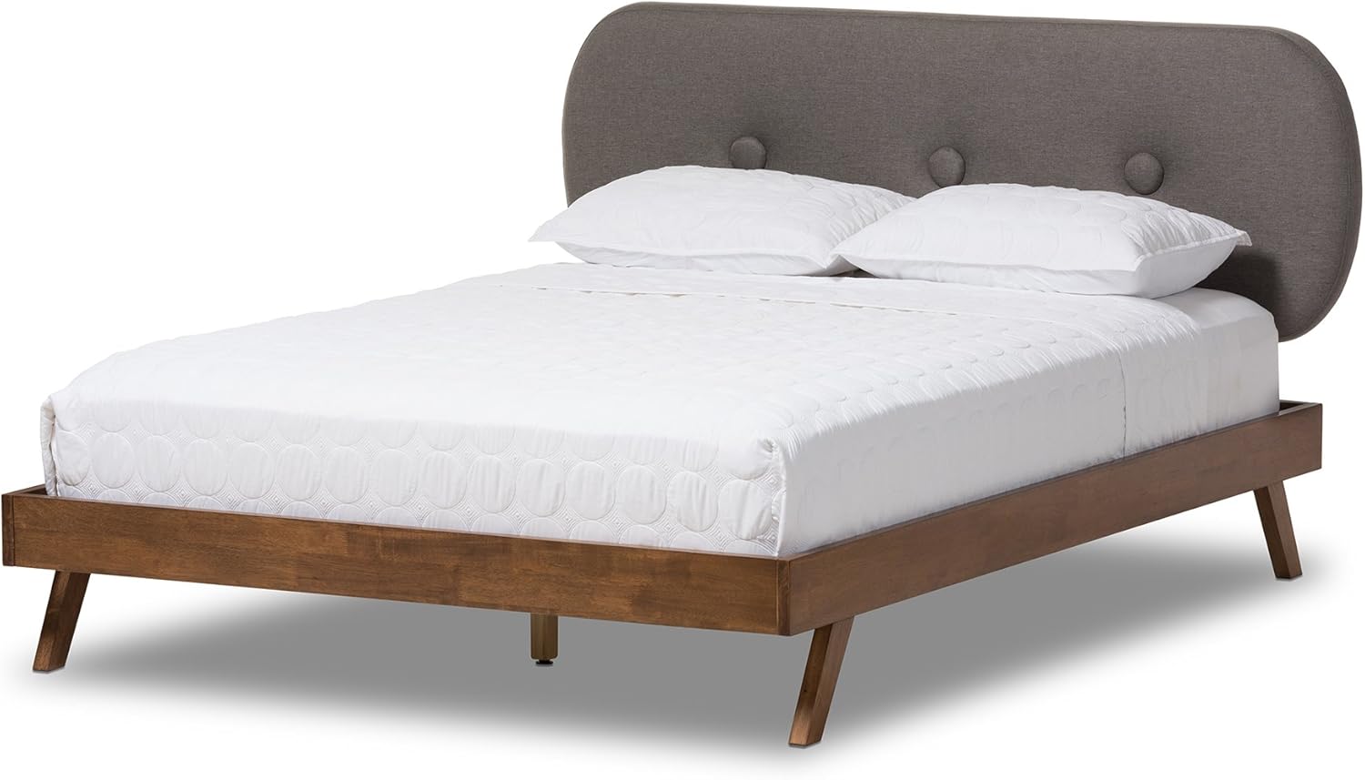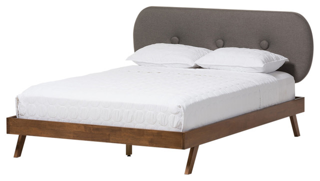 Penelope Solid Walnut Wood Gray Fabric Upholstered Full Size