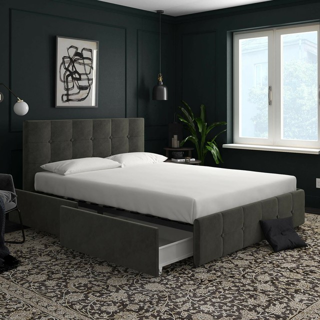 Roch Tufted Platform Bed With 2 Storage Drawers 2 Colors