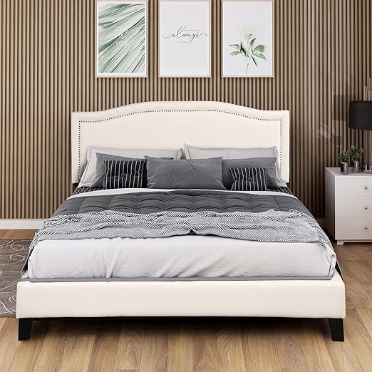 Amazon Com King Bed Frame Upholstered Platform Bed With